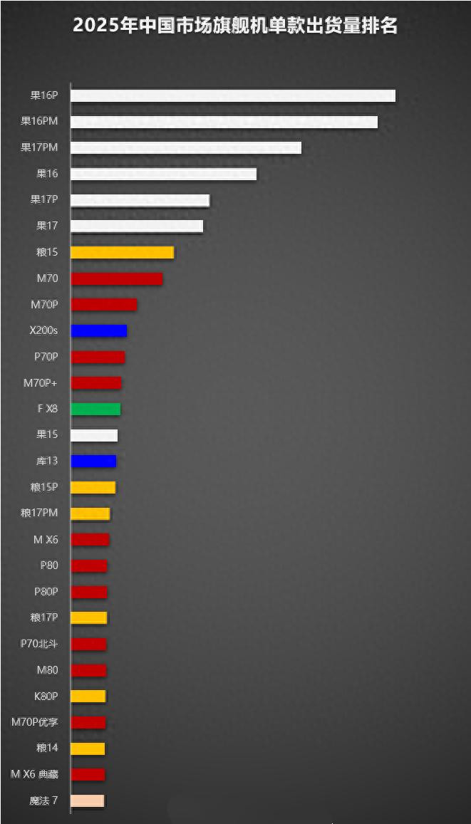 今天分享的是2025年国内旗舰机单品出货量榜单:这个榜单的标准是100万台起,共有28款旗舰手机进入榜单,其中有7款是苹果手机,剩下的21款均为国产手机。如果按时间分组的话,9月后发布的新机有只有6款,苹果和国产手机各有三款,以下是榜单的详细内容。(数据来源@智慧芯片案内人)