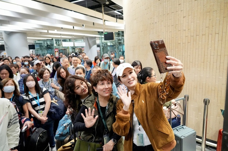 专列抵达贵阳北站出站口,浓郁的贵州风情便扑面而来。身着绚丽民族服饰的文明旅游形象大使列队相迎,以苗族挂彩蛋、芦笙迎宾的传统仪式迎接远道而来的客人,表演者用贵州方言送上“鸿运当头”的祝福,暖心互动让香港游客倍感亲切。