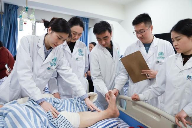 成都风湿医院痛风科门诊主任团队正在检查病人情况。成都风湿医院供图