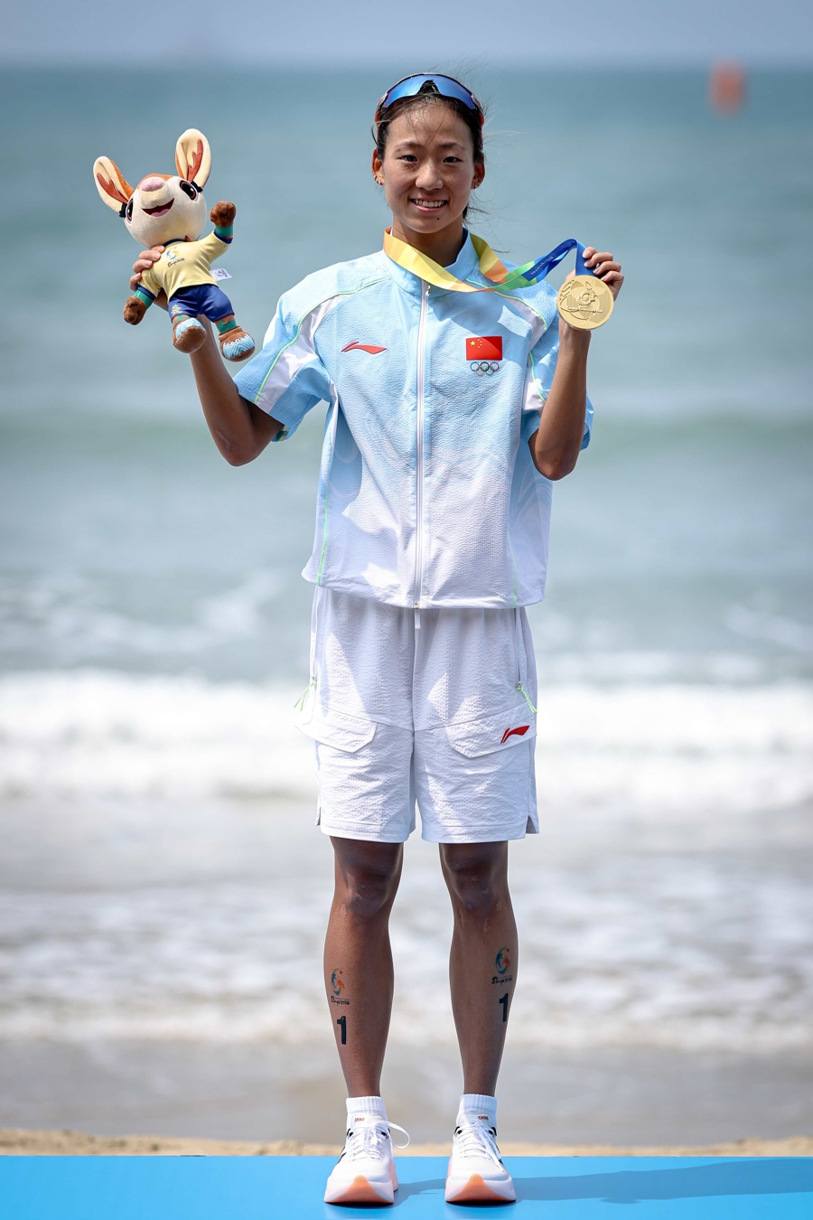 在同一天、同一片海域,夫妻二人接力冲过终点线,为国争光。海风、浪花与沙滩共同铭记下这一刻,他们用绝对的硬实力,在天涯海角留下了一段属于中国体育的浪漫故事。