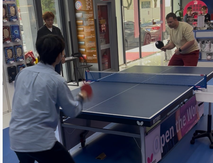 更令人欣喜的是,嘉年华的效应持续外溢,不仅带火了本地消费,更吸引了外地乃至境外客流慕名而来。据门店工作人员介绍,自三月底海外学校春假旅游季以来,几乎每天都有外国游客前来选购乒乓用品。前不久,一支台湾旅行团在感受了上海乒乓球嘉年华的热烈氛围后,乘坐旅游大巴专程到访门店,挑选心仪的乒乓装备,以球为媒,感受国球魅力。从本地球友到外地游客,再到境外友人,乒乓球嘉年华正不断放大国球的吸引力,让虹口的体育消费场景更具活力与延展性。